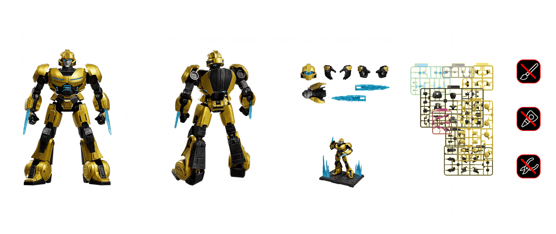 Bring B-127 to life with this amazing 11.8cm model kit! Watch as eyes and chest light up, creating the perfect display piece for your desk. With over 20 points of movement, you can recreate classic battle poses or design your own action scenes. Each detail matches B-127's movie appearance, from his swappable head to his battle gear.
