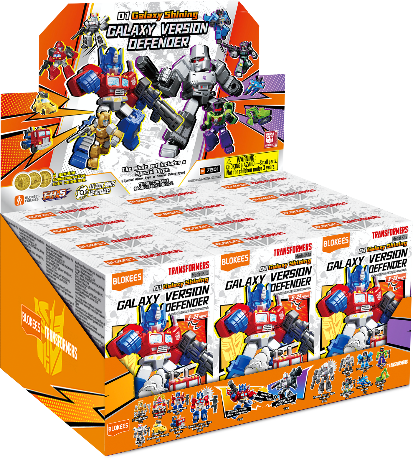 Total Set: 12 Regular Figures x 12 (Odds: 1/12 each) Optimus Prime & Megatron (Odds: 1/24 each) Special Armor Type (Odds: 2/144) Special Galaxy Type (Odds: 10/144)