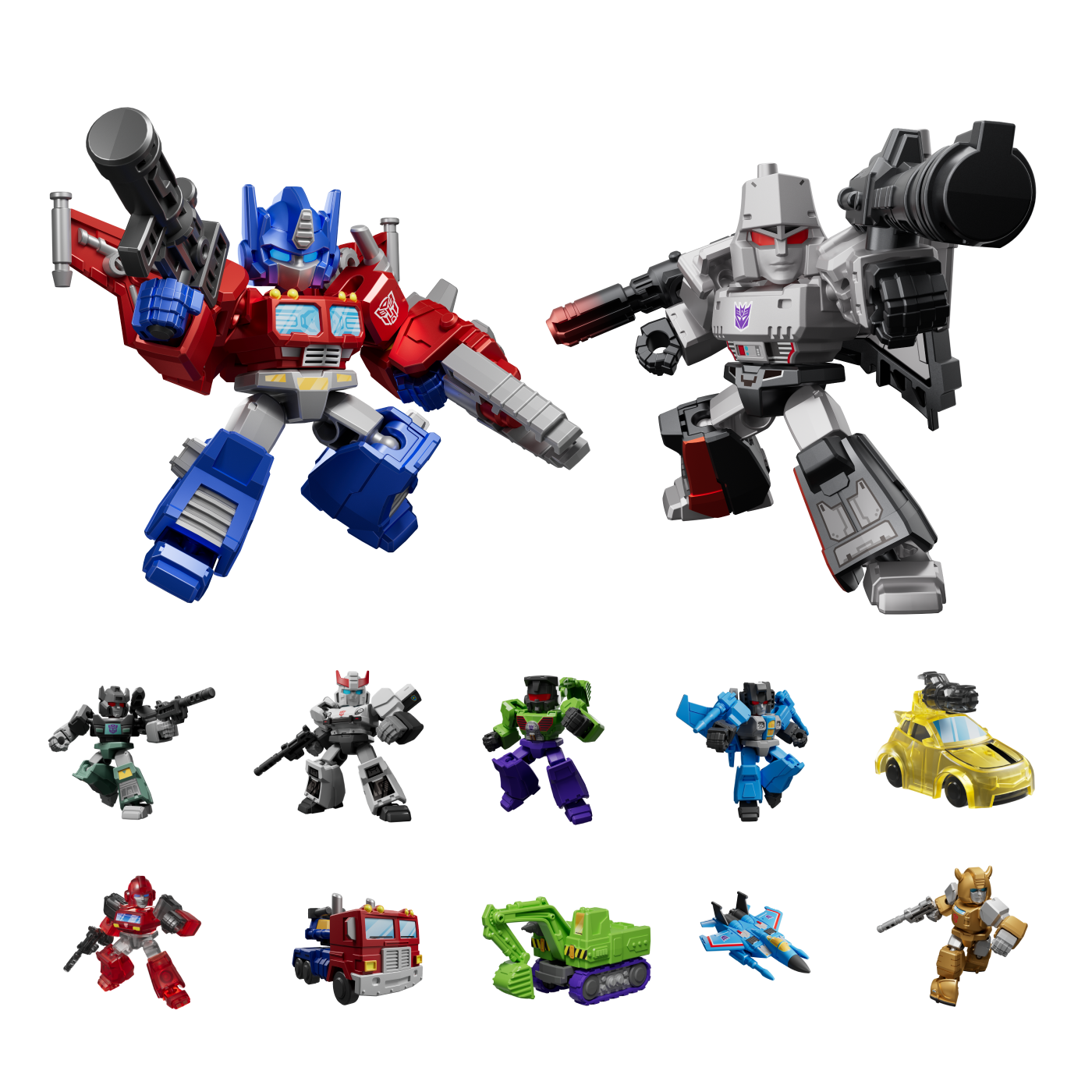 Every box in your 12-pack set is a treasure waiting to be discovered, with special armor types hidden inside. You'll find amazing robots and vehicles, plus bonus collector items like commemorative coins and special cards. The best part? You're guaranteed to find secret figures, including the super-rare Optimus Prime Firepower and Megatron Fully Armed editions!