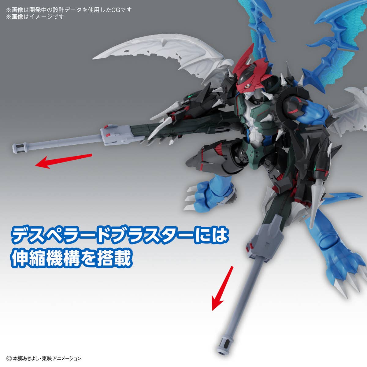 Paildramon from "Digimon Adventure 02" appears in a new "Figure-rise Standard Amplified" model kit from Bandai, with simplified proportions! Gloss injection is used for the black parts to pursue the contrast between biological and mechanical; the Desperado Blaster is equipped with a telescoping mechanism. You can also combine them as an Amplified original gimmick. The spikes on the arms of the Amplified original gimmick expresses the injection state with lead wires. The wings mounted to its back are made of PET sheets with a pattern printed on them to create a vivid, sharp look. Flexible movement and posing of the tail is achieved with the use of a lead wire. Order this magnificent Digimon for your own collection today!