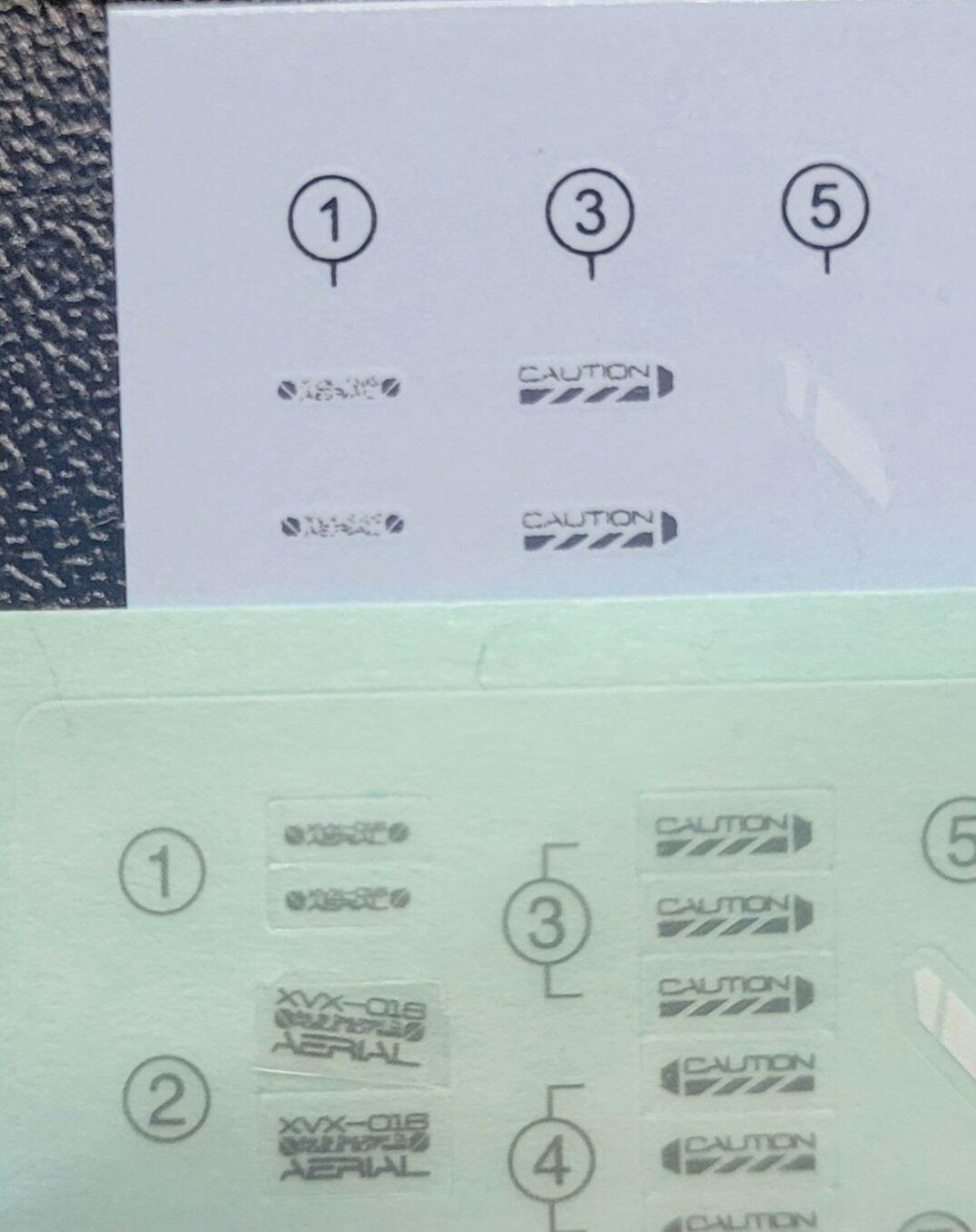 On the picture you can clearly see the difference between original stickers coming with the kit (bottom) and EVO decals (top).