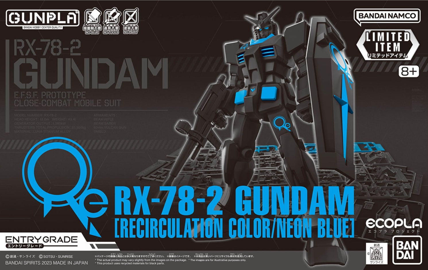 Whether you're a seasoned Gundam collector or a newcomer passionate about sustainability and cutting-edge design, the "ENTRY GRADE RX-78-2 Gundam [Recirculation Color/Neon Blue]" is a must-have. Its distinct design, ease of assembly, and eco-friendly undertone make it a remarkable piece that embodies the spirit of innovation and environmental responsibility.