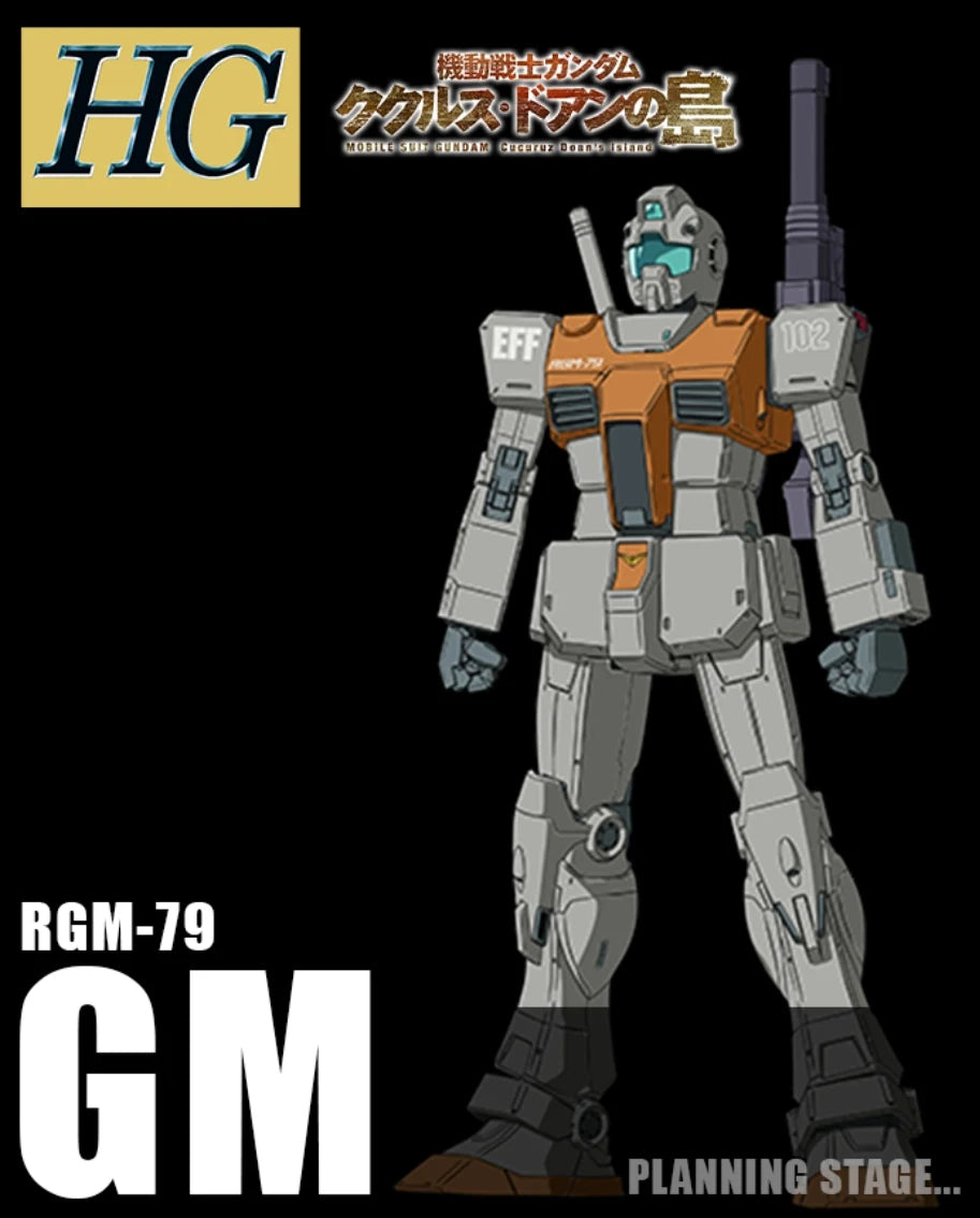 A prototype model of RGM-79 GM with shoulder cannon equipped from the Mobile Suit Gundam: Cucuruz Doan's Island film was on display at the Gundam Next Future -TOKYO BASE- exhibition on September 29th, 2022, suggesting that the kit was in planninh stage.