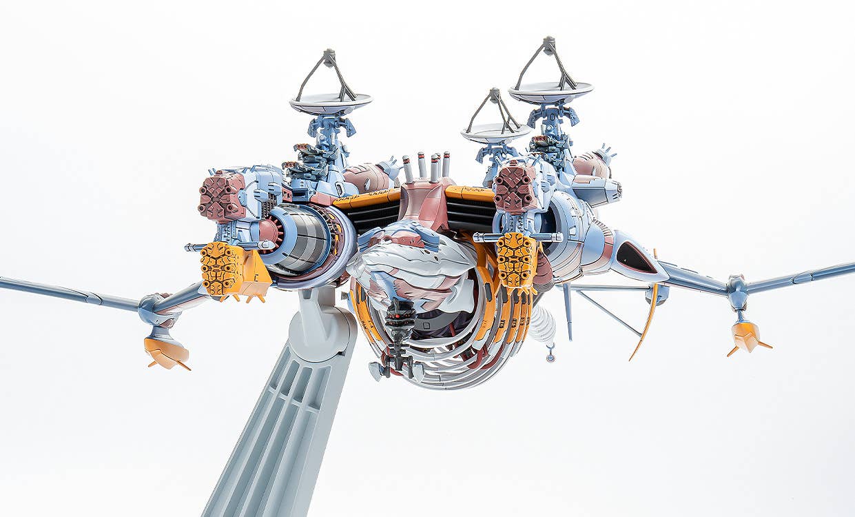 Max Factory brings the AAA Wunder, WILLE's main aerial battleship in "Rebuild of Evangelion," into their "PLAMAX" plastic model-kit lineup! This elaborate kit will be an impressive size when completed, and is packed with details and intricate sculpting. The mecha's parts are separated into nine different colors, so it'll be easy to recreate it for your own collection just by assembling it. The main armament and antennas are articulated, and the rib-like white structures and complicated piping allow for a clear view of the main engine contained within. The dedicated display base allows the battleship to be displayed in either horizontal flight mode, or advancing while breaking through the L-Barrier boundary with deep rolls! The main wings and left/right fuselage sections are designed to be removable after assembly, allowing for easy display and transport. Order this spectacular mech for your own collection today!