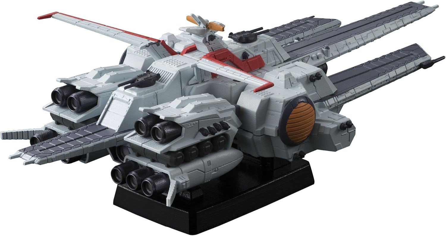 The Nahel Argama from "Mobile Suit Gundam UC (Unicorn)" returns to Mega House's "Cosmo Fleet Special" space battleship figure series! The "Final Chapter Ver." features a catapult on the port side that was destroyed in battle, and the damaged parts of the rear part of the ship are realistically reproduced! Four mobile suits that play an active role in the final part of the story are also included. The parts of the hyper mega particle cannon on the bottom of the ship can be replaced, and you can also recreate the open deck of the MS hangar. A display base is included. Order yours today!