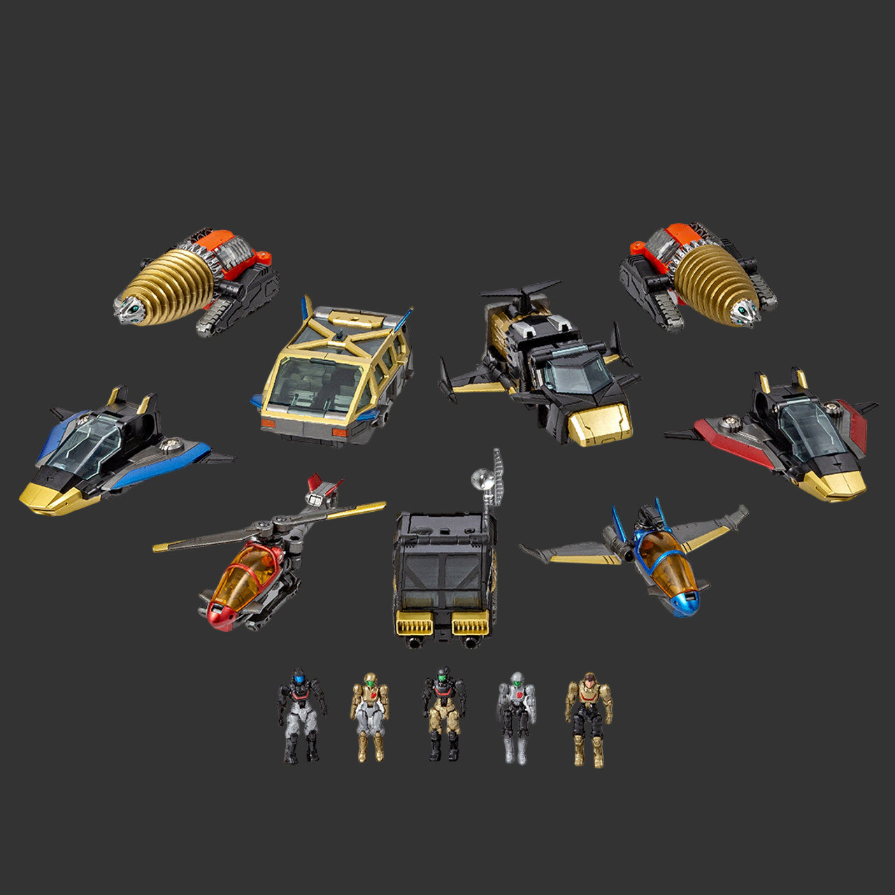 The set also comes with 5 Diaclone team members (3 Diaclone Team Members Ver. 2.0 and 2 Diaclone Female Team Members).