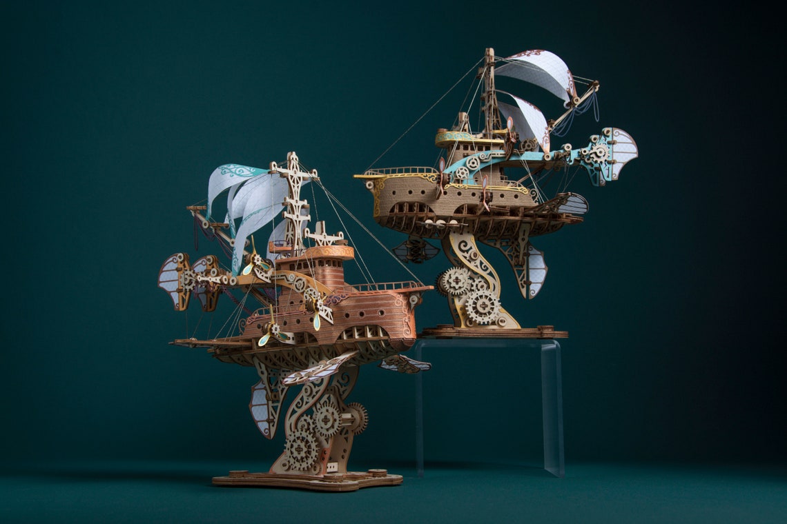 HowCat Masterpiece Fantasy Airships 3d Wooden Puzzle