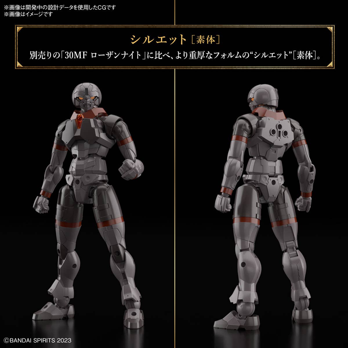 The Rozen Fighter hails from Bandai's "30 Minutes Fantasy (30MF)" model-kit series, where you can create your own fantasy job! This starter set includes the base Silhouette (body) as well as armor and weapons. The Silhouette is capable of flexible human-like actions, and can be used for just about any sort of fantasy job. The head and neck have movable axes, allowing you to tuck his chin in, or stick his face out! The shoulder joints are designed with great care to keep the body line intact, even in bold poses. The movable axes on the chest, torso and waist work in conjunction with the sliding mechanism at the base of the waist joint, allowing for natural poses. The Silhouette has a more substantial form than the separately sold Rozen Knight.
