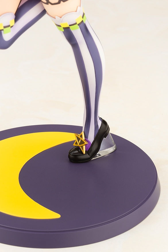 Hololive Production's VTuber Shion Murasaki, a second-generation member of Hololive, is now a gorgeous figure from Kotobukiya! Her dynamic pose shows off her costume, with her capelet and skirt fluttering with her movement, and her hair uses clear parts to reproduces its beautiful, glossy color. Her cute hat is held in place with a magnet and can be easily removed, too; her base is included. Order her for your own collection now!