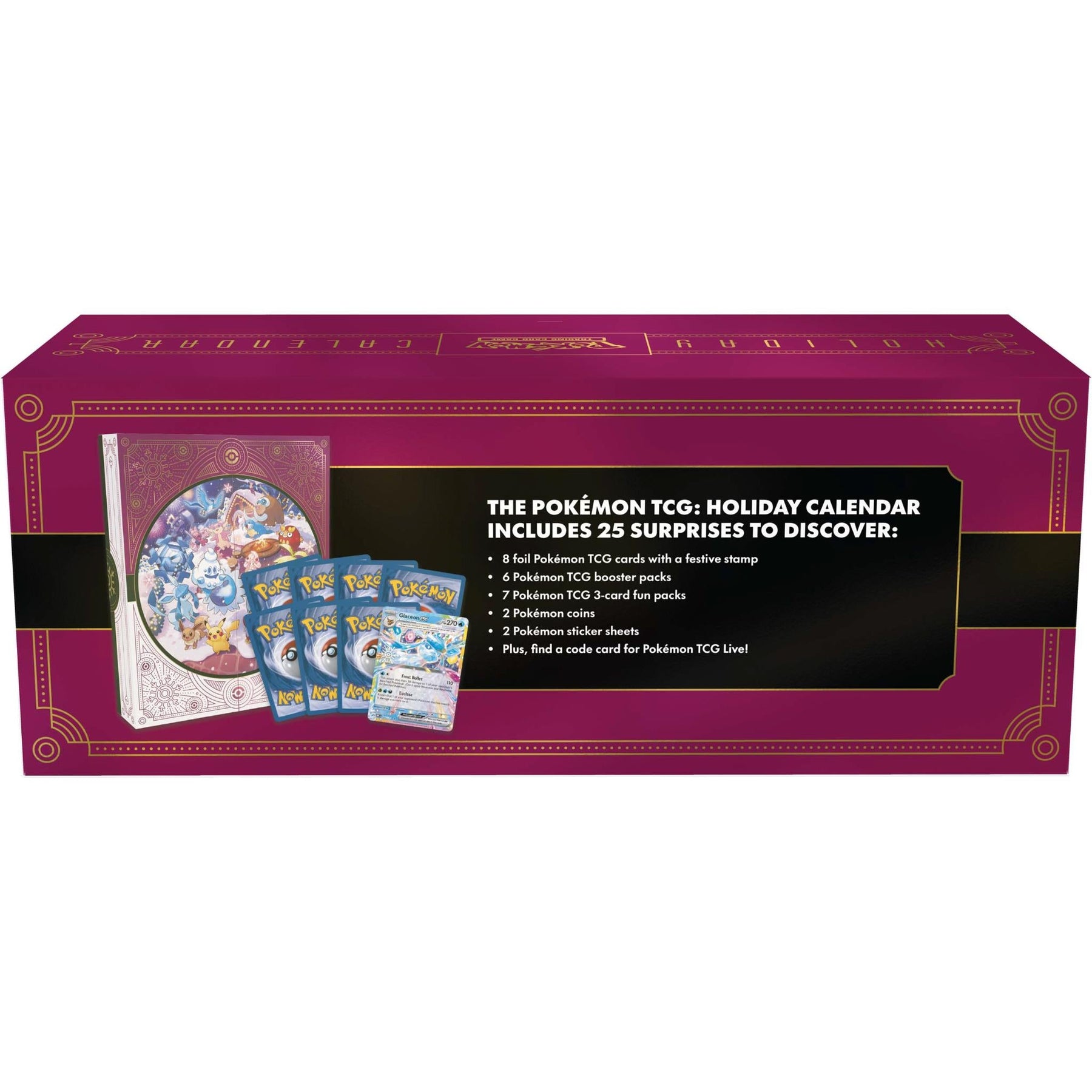 The Pokémon TCG: Holiday Calendar includes 25 surprises to discover including 8 foil Pokémon TCG cards with a festive stamp and 6 Pokémon TCG booster packs.