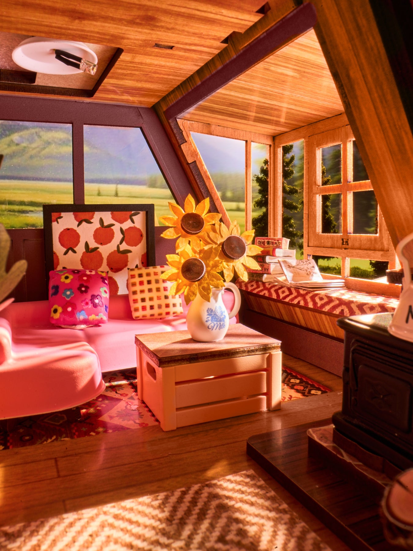 Rolife A-Frame Cabin with fold-away side windows DIY Miniature House DG181