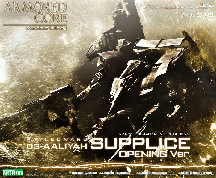 The Rayleonard 03-AALIYAH Supplice from the high-speed mechanical action game "Armored Core 4" returns to Kotobukiya's model-kit lineup! It's equipped with its 051ANAM flare, attached to its shoulder, to reproduce the opening scenes of the game; it also has the back-mounted Overd booster. The plasma rifle SAMSARA and the night combat version of the 02-DRAGON SLAYER laser blade are also included, as is the 051ANNR left-hand rifle, the SALAF CORE-OPC01 stabilizer, the 03-AALOYA/CLS1 and more! This heavily armed battle mech deserves a place in your collection -- order yours today!
