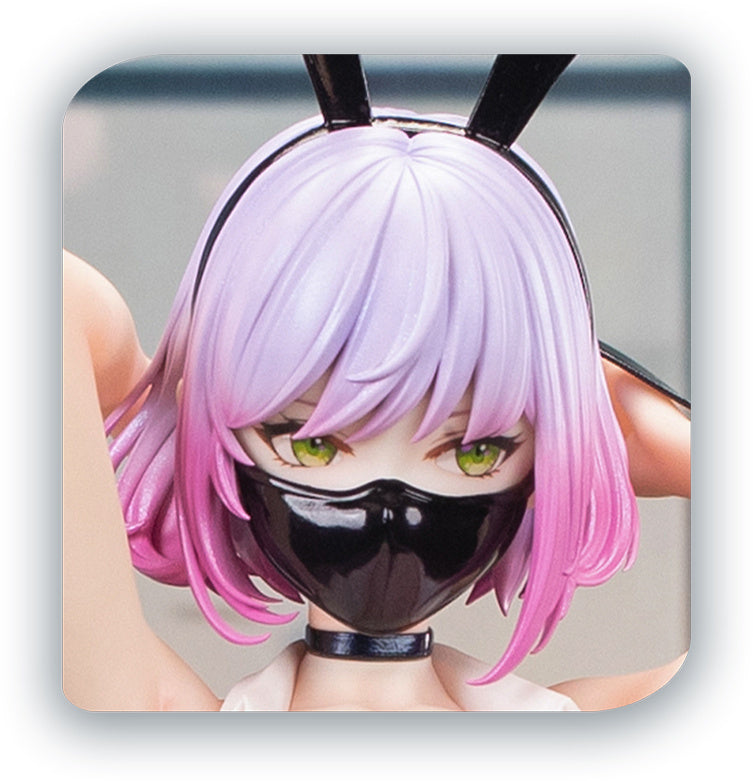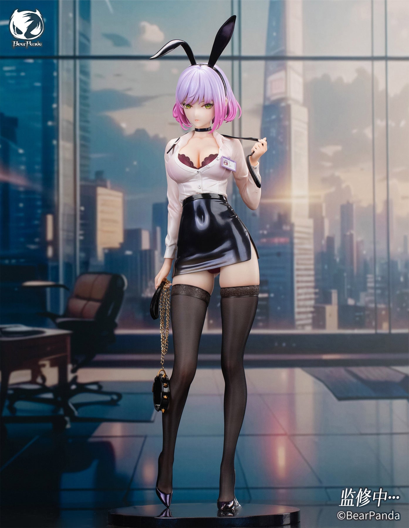 Luna is an original character from the illustrator YD, and now she's a gorgeous figure from BearPanda! She wears a pair of bunny ears and a tight black miniskirt; her blouse is unbuttoned to further show off her curves, and she has a collar with a chain leash in one hand. She comes with interchangeable arm parts so you can display her tying her mask in place, as well as an interchangeable face with a "tracking eye" feature, so she'll always be gazing directly at you no matter what angle she's viewed from! Her sexy black thigh-high stockings are made of real fabric for an amazing look and feel! Her base is included too, and at a big 1/4-scale, she'll make a big impression wherever you choose to show her off! Order her for your own collection today!