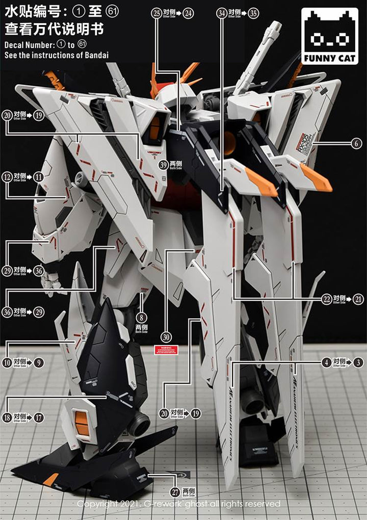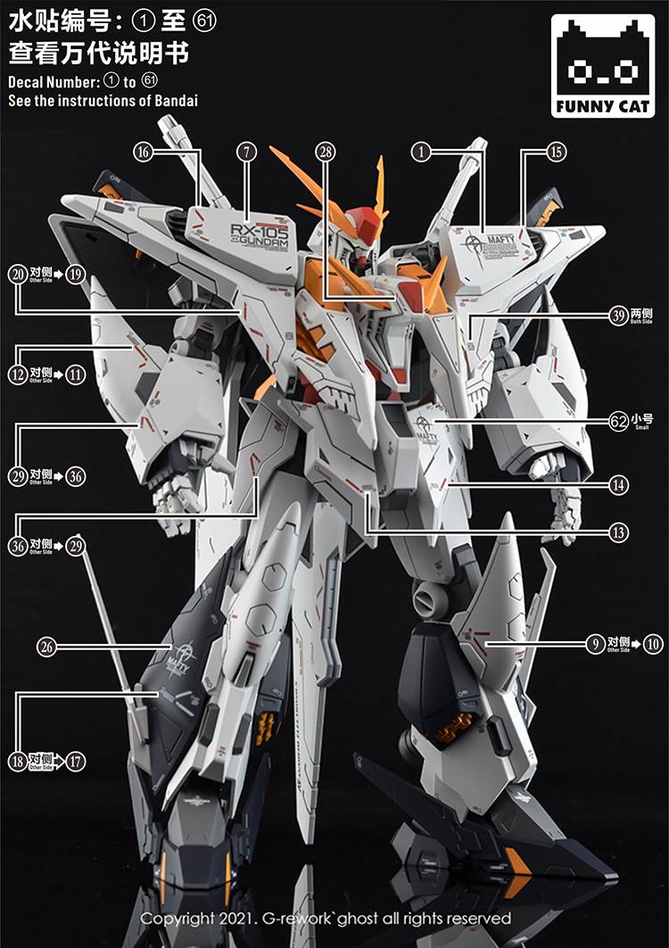 Funny Cat Decal - HG 1/144 - RX - 105 - XI Gundam - Fluorescent