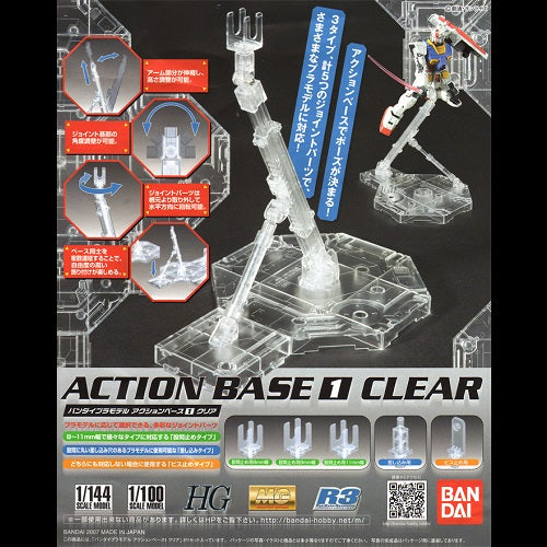 This display stand for holding 1/100 scale Gundam models, includes various adapters and holders to fit almost any Gundam kit! It assembles just like building a Gundam model itself and features a black material.