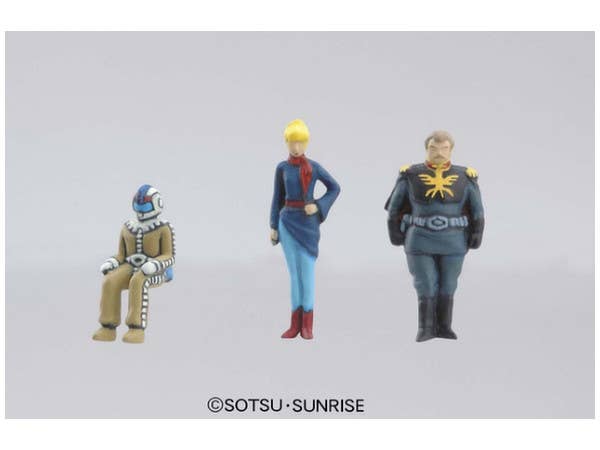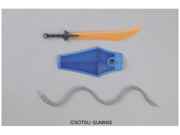 Its signature weaponry includes a shield, a Heat Saber, a Heat Rod, and a Finger Vulcan for its left hand. A regular manipulator left hand is also included to replace the Finger Vulcan if you so desire. Each section of the Heat Rod is ball-jointed so you can bend it into any shape you want! The blade part of the Heat Saber is made of clear orange, and the Mobile Suit's cockpit can slide open to reveal a sitting-pose pilot figure (molded in light blue). Also packed in the set are in-scale figures (molded in light blue) of Ramba Ral and his aide Crowley Hamon. A sheet of stickers and dry-transfer markings are included.