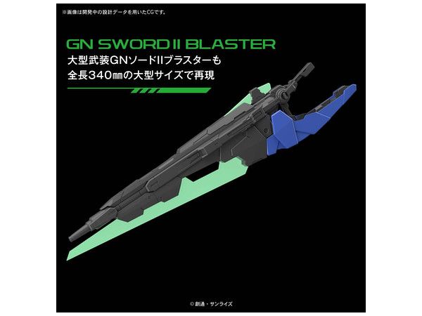 - Large Armed GN Sword II Blaster is reproduced in a large size of about 340 mm in total length.