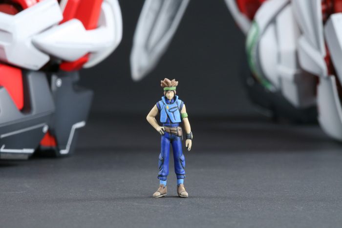 - It can be equipped with its arsenal of weapons that consists of a Beam Rifle, shield, two Beam Sabers, and a Mobile Suit-sized Gerbera Straight katana with sheath.
