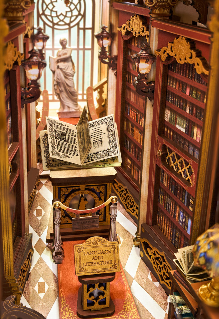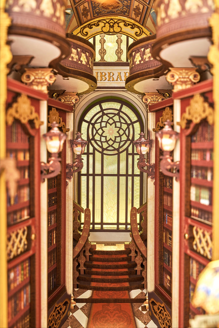 Step into a magical world of books and classic elegance with the brand-new Rolife Library of Wonders (TGB16). This exquisitely detailed book nook recreates a luxurious old-world library featuring grand columns, ornate chandeliers, stained-glass windows, and shelves filled with miniature books. Perfect for collectors, book lovers, and DIY hobbyists.