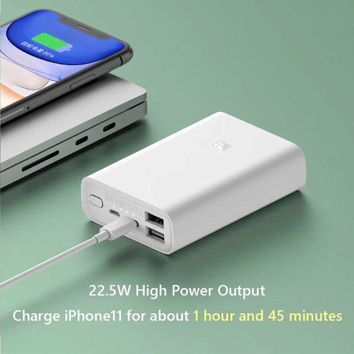 • 22.5W High Power Output, Shorten The Charging Time By 54%.USB-A and USB-C support single-port 22.5W MAX output, which can provide fast charging for smart devices. With the Xiaomi Type-C to Lightning data cable (1m),